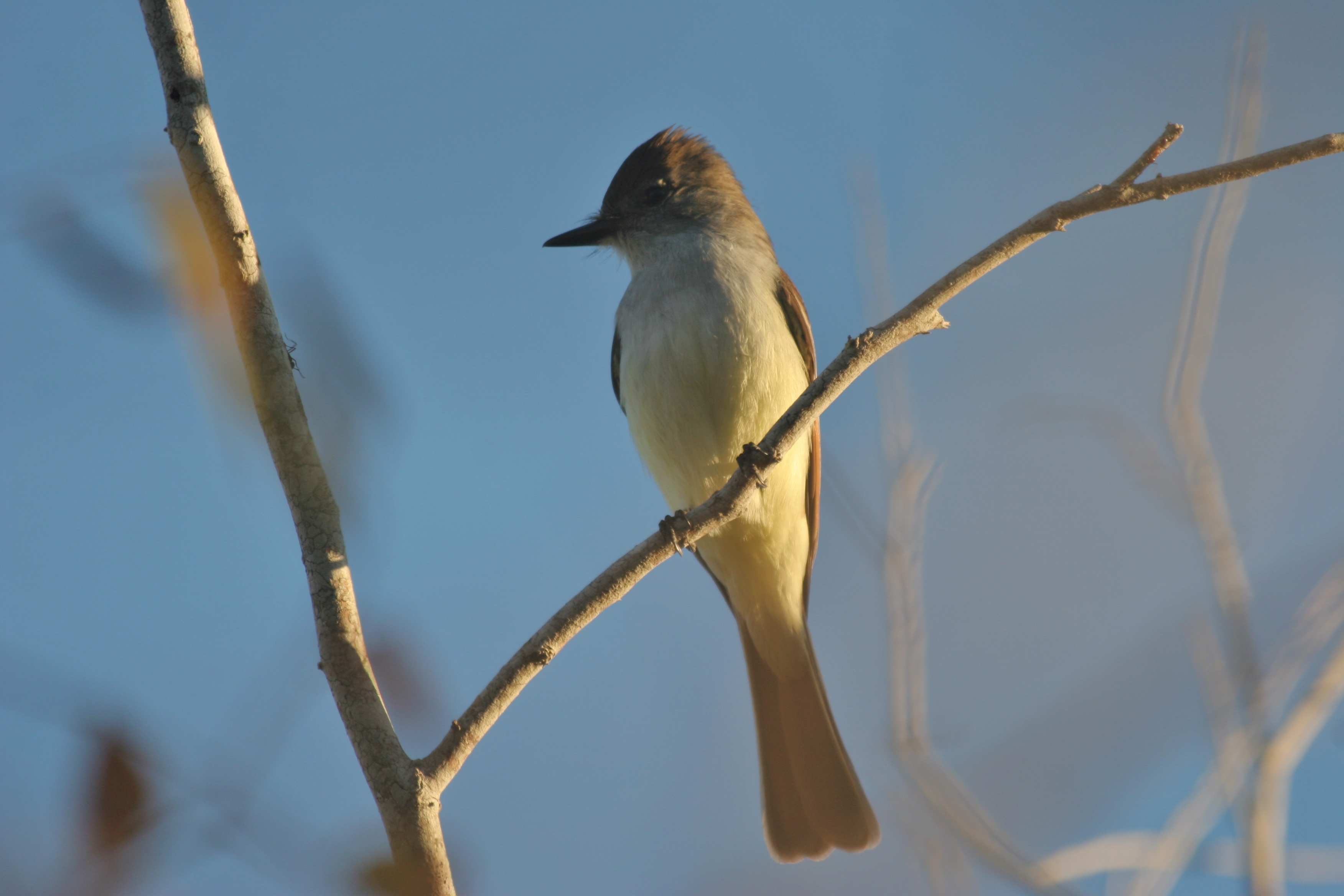 The most significant publicity for bird chasing probably was the 2011 movie, ‘The Big Year’. The movie is a fictionalized version of the 1998 ‘Big Year’ described by Mark Obmascik in a book with the same name, about three obsessed birders and their attempts to record the most species of birds north of Mexico in a single year. The book (and the movie) opens on January 1, 1998, with Sandy Komito having a pre-dawn cup of coffee in a restaurant in Nogales, Arizona. As dedicated as any storm chaser, he has just flown 2,400 miles from his home in New Jersey to find birds, and he launched his year in Arizona because in the prior week Arizona had reported more rare birds than anywhere else on the continent. One bird in particular drew him to Lake Patagonia, a bird that had last appeared in the U.S. during Truman’s presidency, the Nutting’s Flycatcher. A decade passed before this bird was seen again in Arizona, but it is now reported fairly regularly at Bill Williams River National Wildlife Refuge near Lake Havasu, and spring nesting birds have been confirmed.