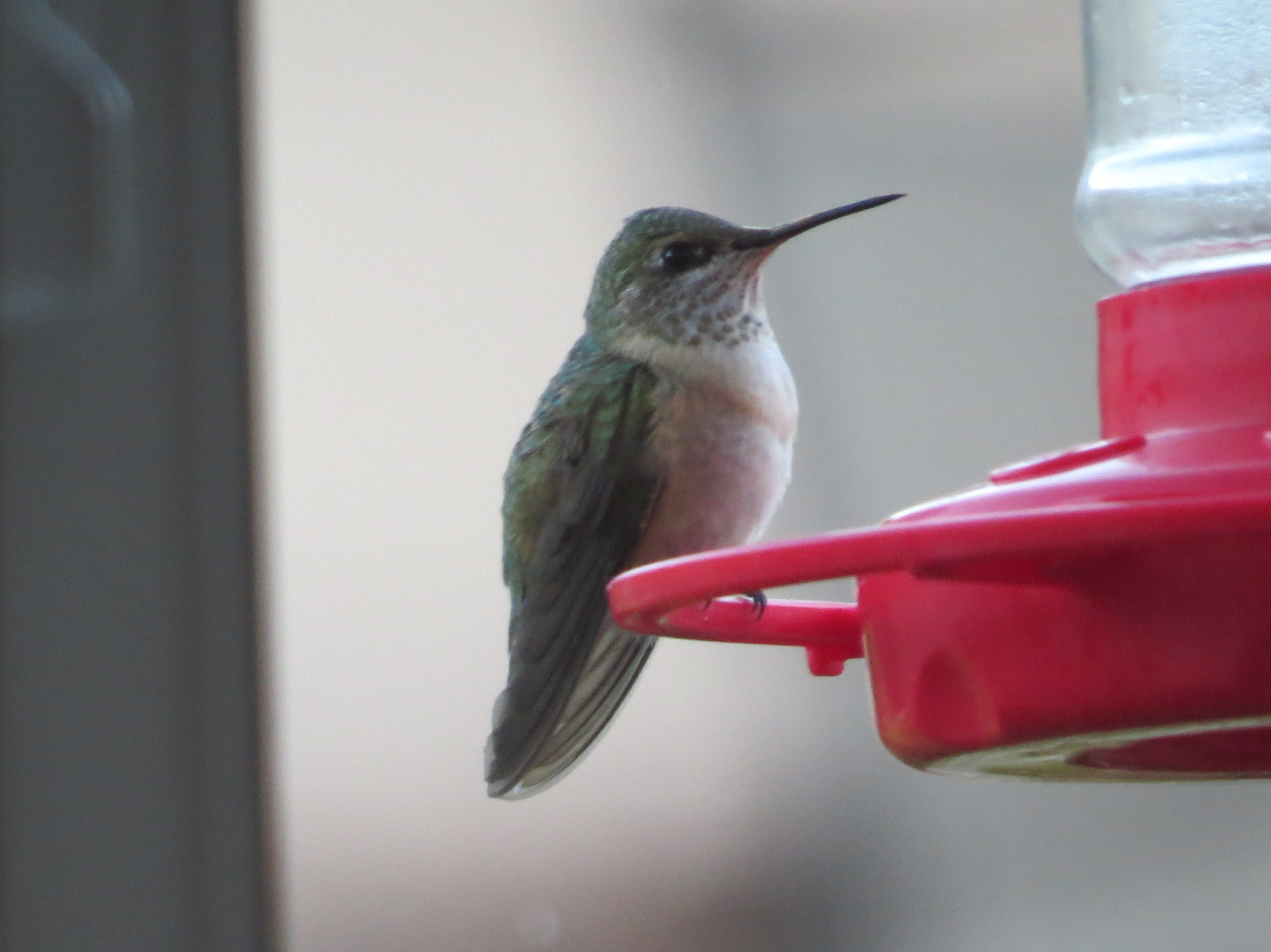 The Calliope Hummingbird is a western mountain breeder, nesting in California north to British Columbia and Alberta, and east into Montana, Wyoming and Utah. Wintering in Mexico, the Calliope’s migration path strays east to Colorado, New Mexico and Texas, and this is one of three hummers we enjoy in the high country of Colorado during its southbound migration in July and August. We hang several feeders on our condo’s deck in Keystone at 9,300 feet, and during late summer Rufous and Broad-tailed Hummingbirds are as thick as bees as they gain weight for their journey on to Mexico. Calliopes are far fewer in number, but generate much more excitement when they do show up. There is something magical about penny-weight birds that have trouble reaching the holes in a hummingbird feeder from the perch.